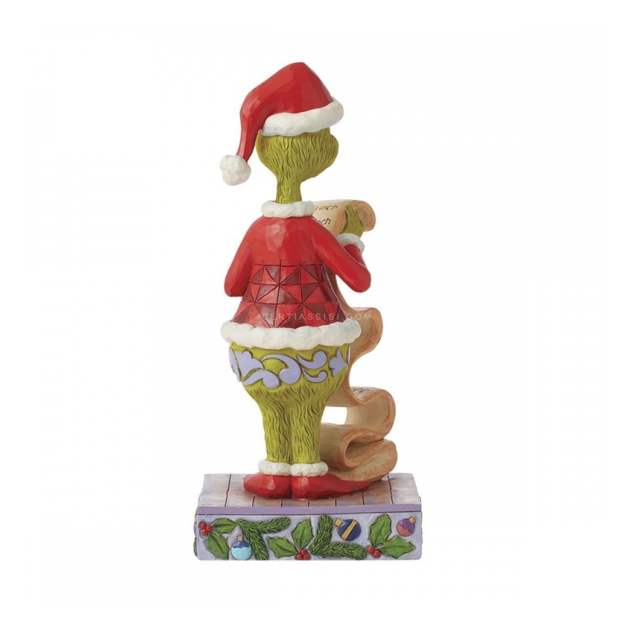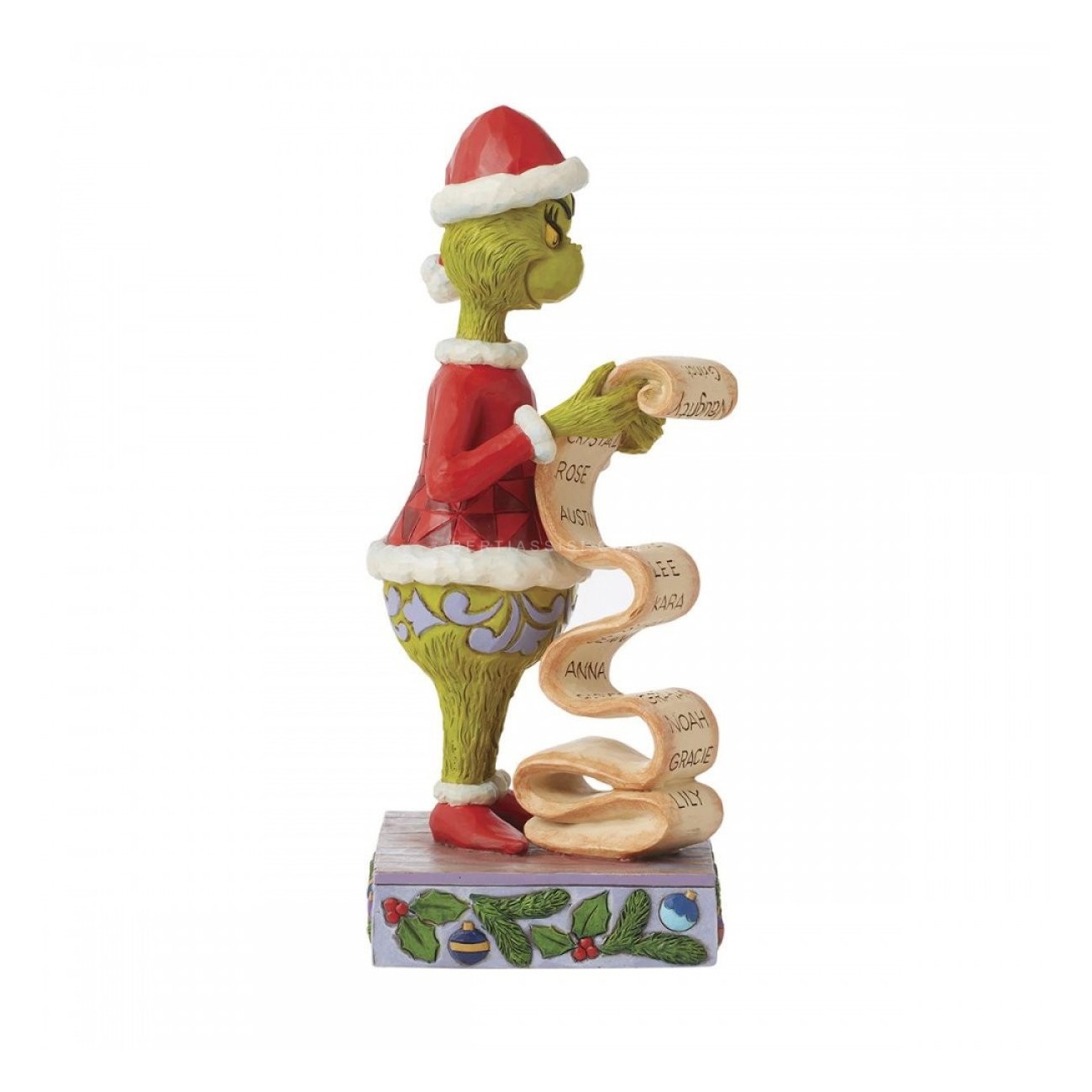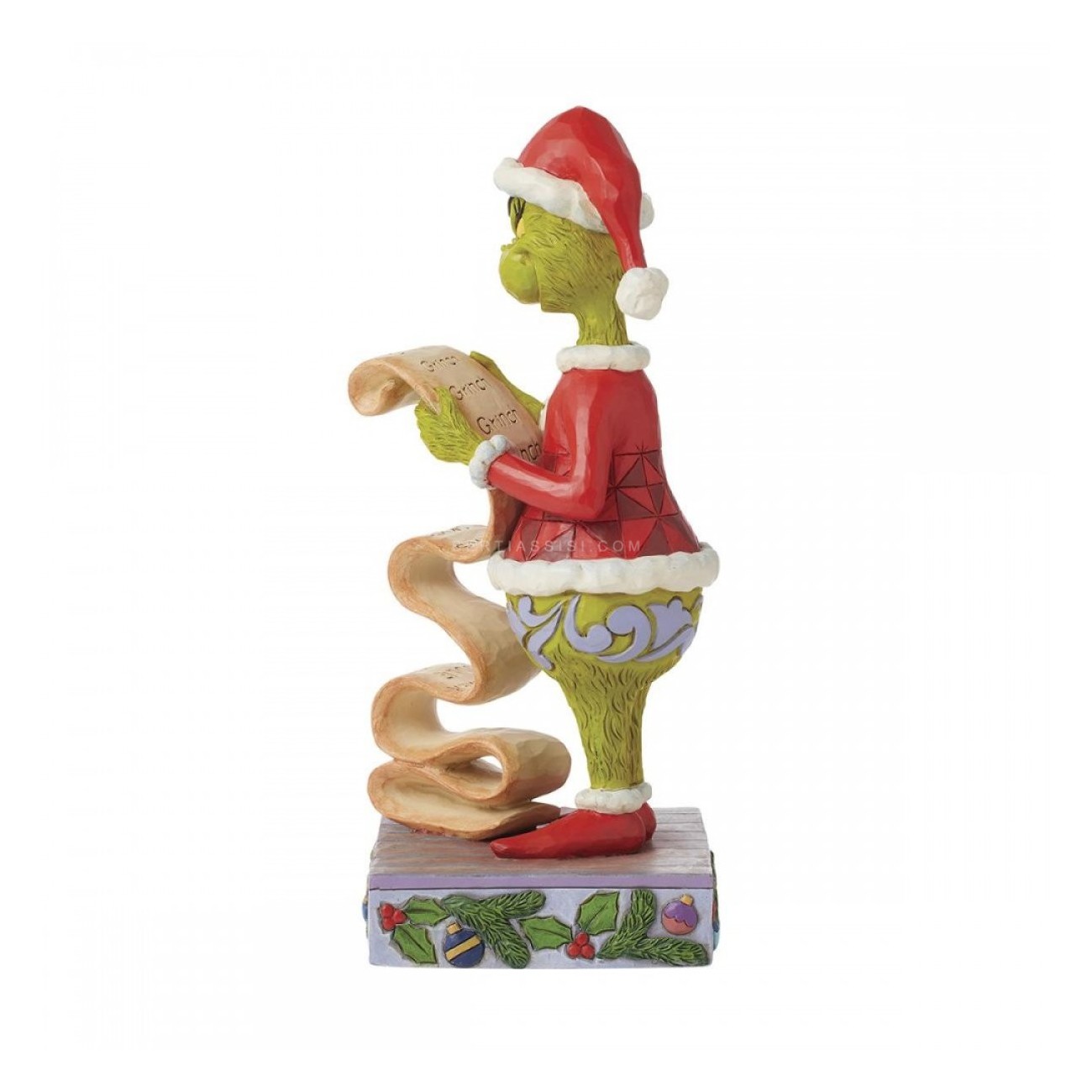 Questa statuetta disegnata da Jim Shore presenta il Grinch vestito da Babbo Natale che esamina un lungo elenco di persone cattive e simpatiche. Complottando per rovinare il Natale, il Grinch sposta tutti i nomi sulla lista dei cattivi per assicurarsi che nessuno riceva regali quest’anno. Dalla collezione Grinch, progettata dal pluripremiato artista e scultore Jim Shore. Ogni statuetta è dipinto a mano e sono previste leggere variazioni di colore, rendendo ogni pezzo unico.