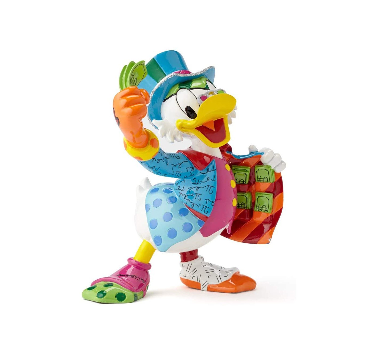 Bellissima Statuina di Zio Paperone dai colori sgargianti e vivaci. Collezione firmata dall’artista Romero Britto, realizzata in resina porcellanata e corredata di scatola Disney. Ottimo per regali per la casa.